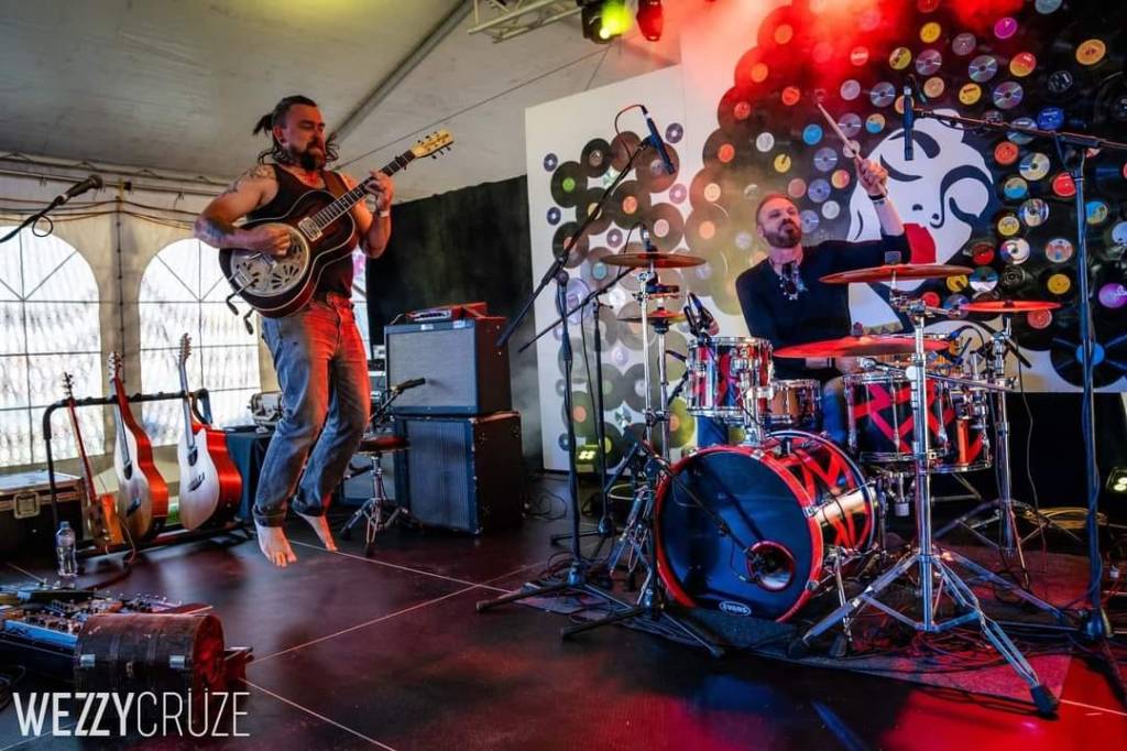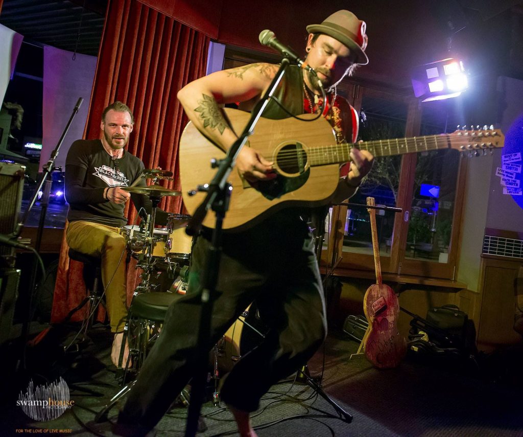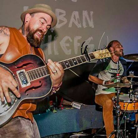 The Urban Chiefs are a Psyche – Blues – Stoner – Rock band from Tamworth NSW. Blake Saban (Guitars & Vox) and Glendon Finlay (Drumcussion) have been changing people’s perspective of what a ābandā should look and sound like since 2009. The pairs huge sound is due to Blakesā unique set up of playing his array of custom guitars through two guitar amps, a bass amp and an acoustic DI signal. Combine this with his powerhouse gravelly vocal stylings and Glendonsā tribal and at times frantic, percussive drum style and you have an Australian two piece like no other. There is so much happening on stage that often people are mistaken in thinking that the guys are using samples or pre-recorded material but everything you hear is being produced by the Chiefs as it happens!